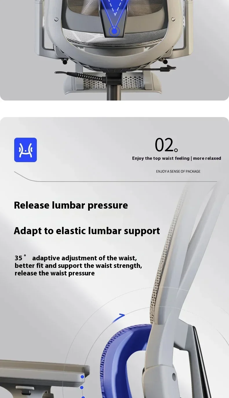 • 3.3D adaptive lumbar support precise support without falling out of place
