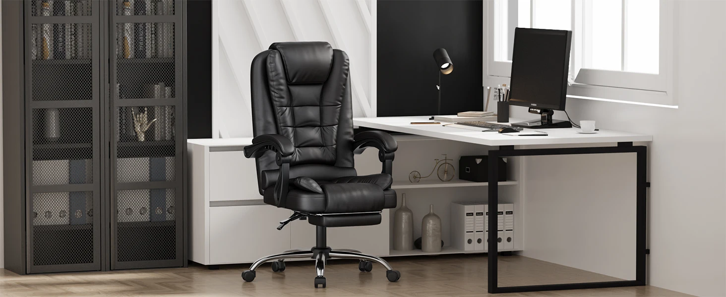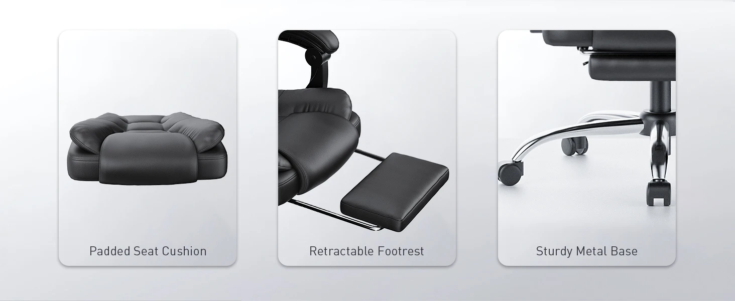 --Naspaluro office chair is ergonomically designed with a stronger wrapping high back, perfectly fit your body shape and provide proper support for your upper and lower back. Equipped with a retractable footrest for your relaxation needs.