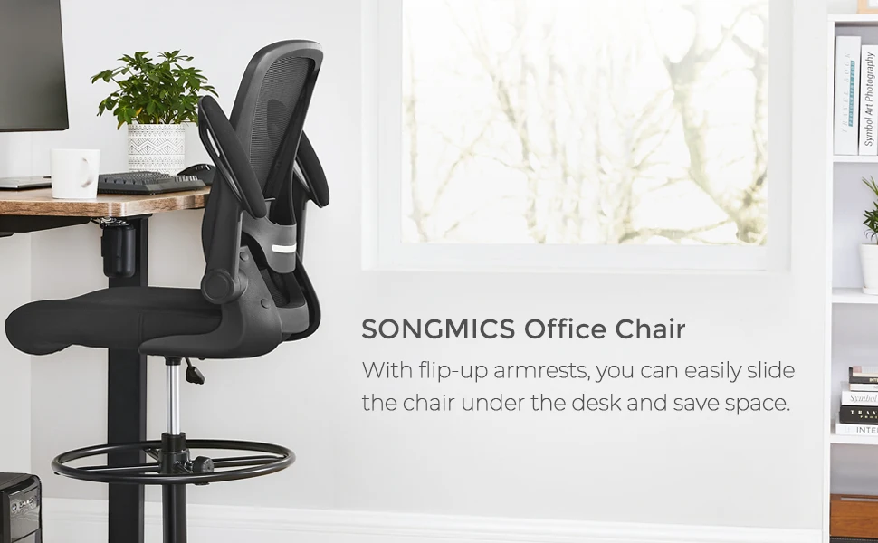 - Flip-up Armrests: The report is ready, the drawing is finished, your boss is satisfied. Now, flip the armrests of this office chair and slide it under the desk to end the workday (and save space, too). It’s time to go home!