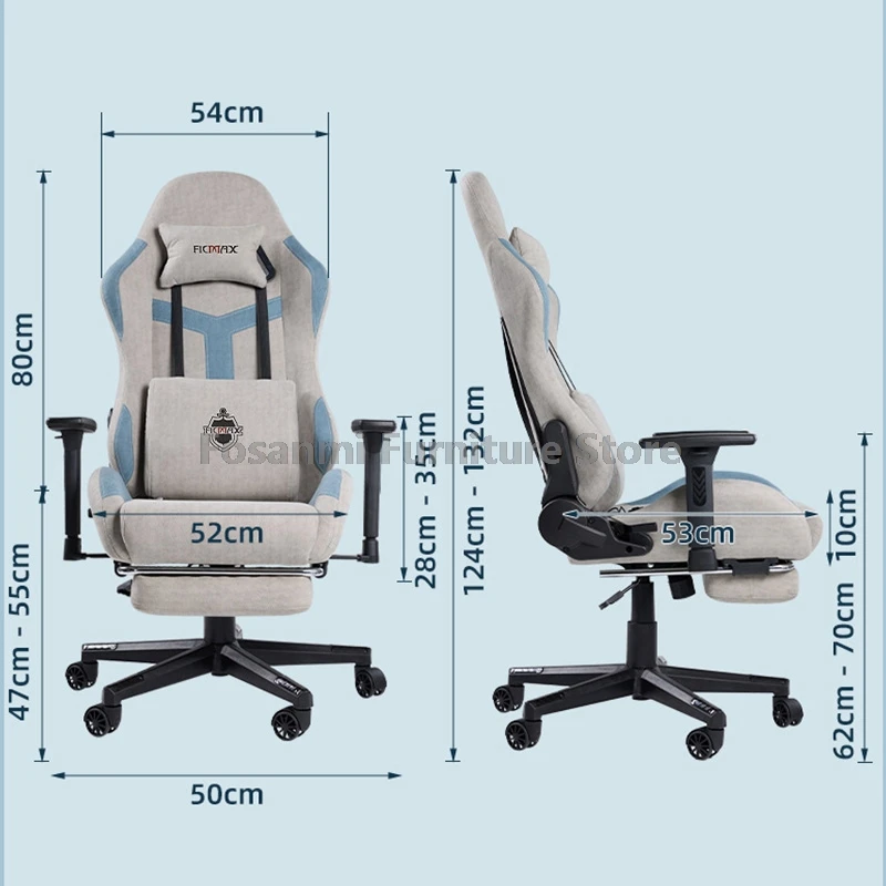 Modern Tech Fabric Gaming Chair with Headrest and Armrests Home Wide Seat Ergonomic Gamer Computer Chair Height Adjustable Reclining Office Desk Chairs