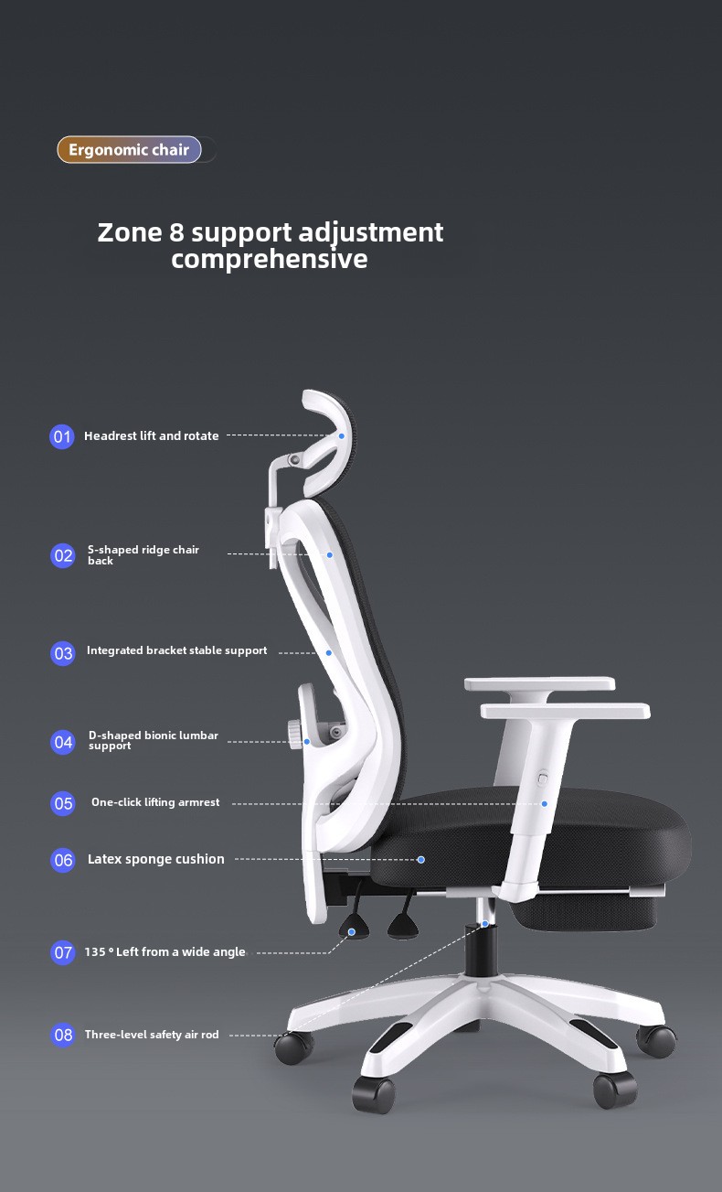 UVR Sitting Is Not Tired Armchair Ergonomic Reclining Boss Chair Breathable Mesh Staff Chair Sponge Cushion Gaming Chair