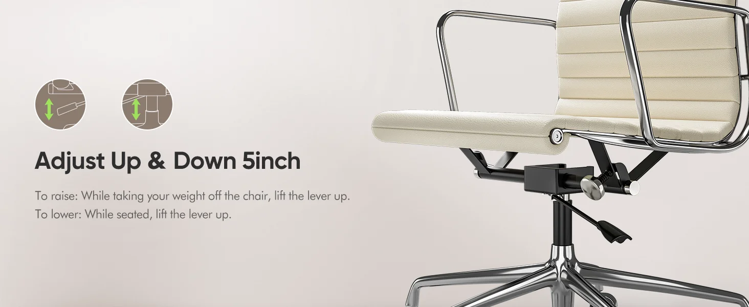 White Mid Back Genuine Leather Swivel Chairs Ergonomic Office Chair Adjustable Swivel Leather Gaming Chair Ribbed Office Chair